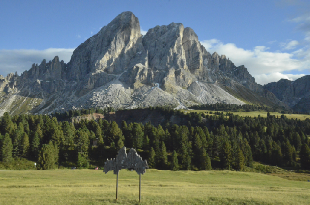Weder verdeckt mein „Bild“ für den Betrachter das Bild der Berge, noch ist es damit identisch. Es stellt die Frage, was der Vordergrund, was der Hintergrund und was das Motiv ist. Es handelt sich um ein subjektives, von der Landschaft inspiriertes Bild.