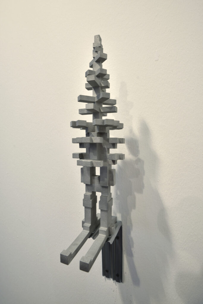 Each work operates along two axes: the physical axis – rotation, statics, verticality – which anchors the object in space, and the conceptual axis – principle, rule, origin – which governs the processes of branching, repetition, and variation.