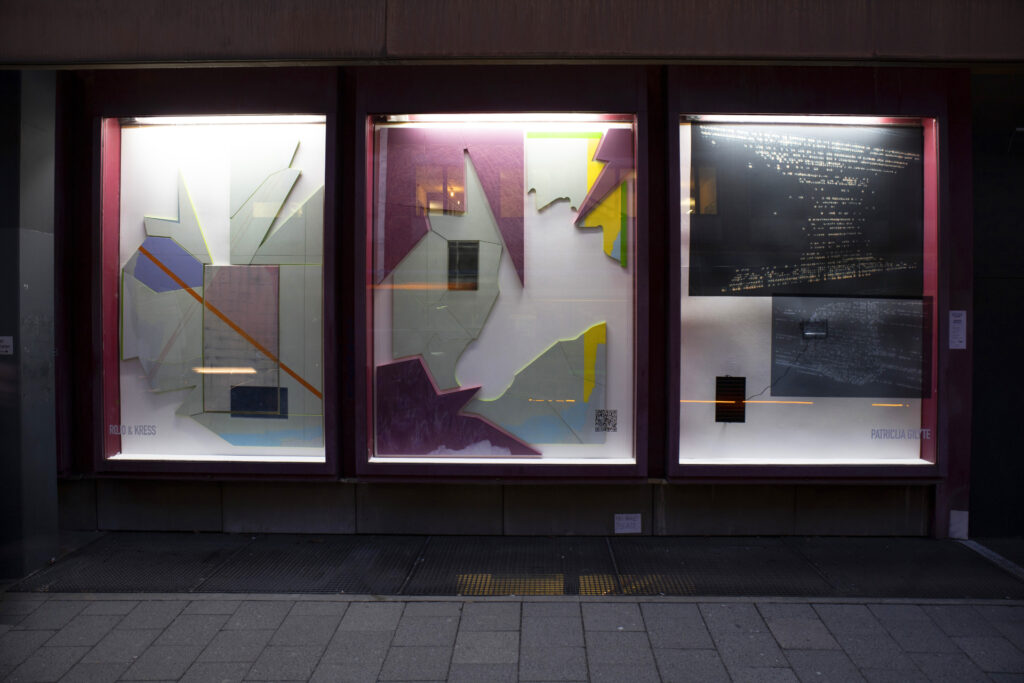 For the window exhibition Lost Weekend Meets Young Art, the artists Patricija Gilyte (Munich) and Rojo & Kreß (Dresden) stage a ping-pong match. It unfolds in a confined space whose width can only be grasped from a distance, while its depth demands closeness.