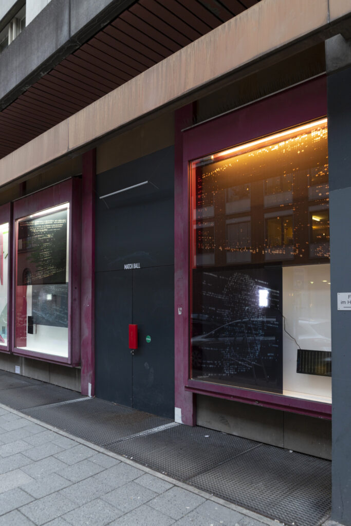 EN// The project MATCHBALL was developed for the window exhibition Lost Weekend together with Rojo & Kreß, the artist duo from Dresden, and was presented across four window fronts, in collaboration with the Association for Urban Art. A shared playful visual element was a single point – a shuttlecock – that „shot“ through all the display cases and, in doing so, through our works.