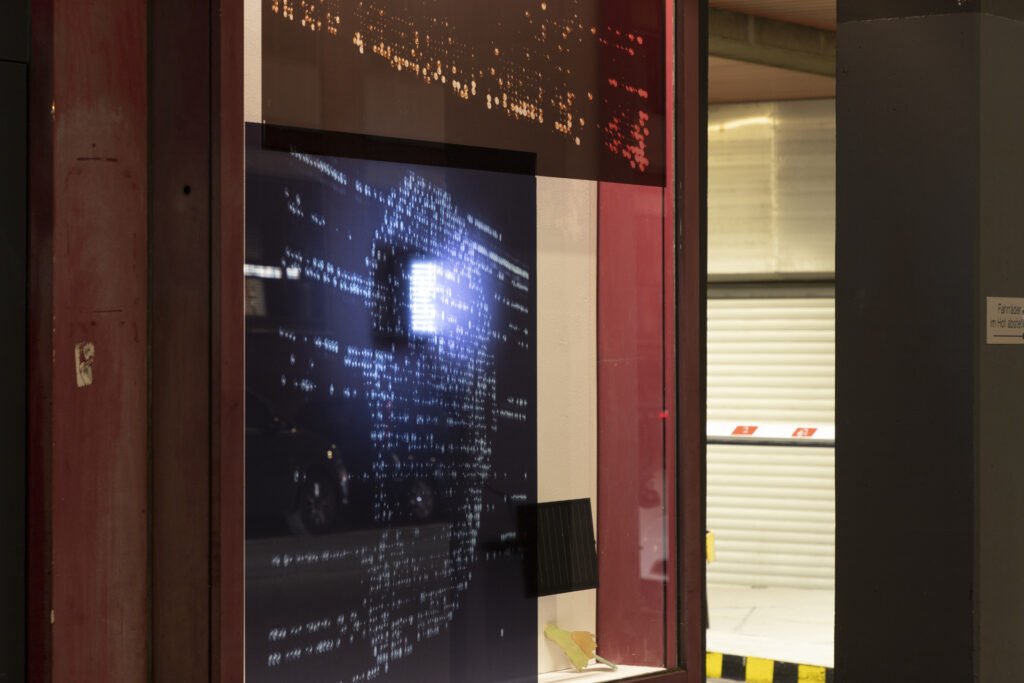 My windows reflected the variety of lights in a city: from LEDs and car headlights to fluorescent tubes and sparkling reflections. During the day, a solar panel collected energy to illuminate the installation from within in the evening, depending on the light captured during the day.