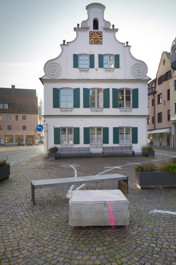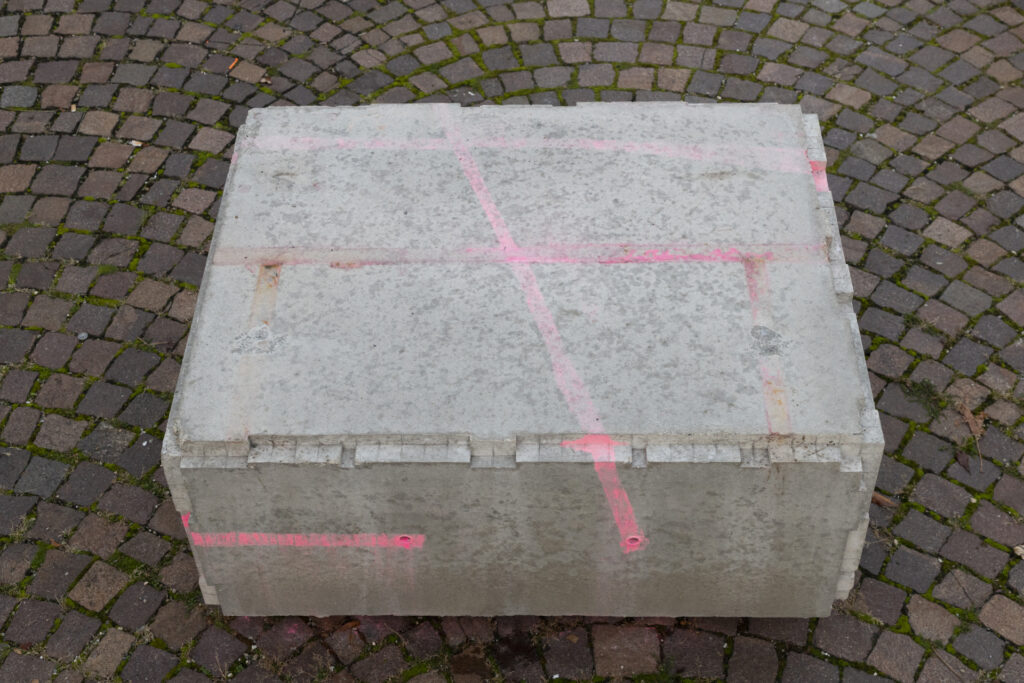 The cast concrete object appeared at two locations within the city and was positioned in such a way that no clear classification as a pedestal, seating object, or road barrier was possible. The heavy object thus remained in a state of suspension. It questioned the street space itself; the architectural and urban-planning silhouettes along its surfaces could be read up close like a form of Braille.