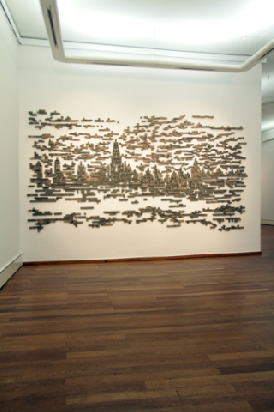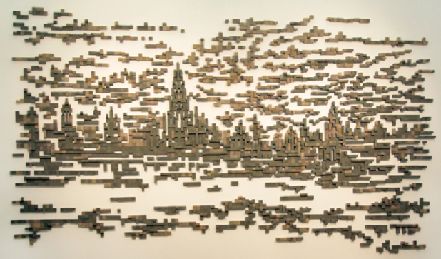 Generell beschäftige ich mich mit der Frage der Grenze, die auf ein territoriales Gebiet, aber auch auf eine Disziplin oder ein Medium übertragen werden kann. Ich denke, dass im Wandel der Zeit und im sich wandelnden Raum die Grenze als Konstrukt nur für einen kurzen Augenblick existieren kann. Deshalb arbeite ich gern in Medien, die es mir ermöglichen, diesen ephemeren, „verpixelten“ Zustand zu thematisieren. Bei den Wandreliefs geht es mir weniger um die exakte Rekonstruierung, sie sind vielmehr als Verbindung zwischen Zeichnung und Codierung zu verstehen, und erscheinen als aus dem Gedächtnis und ohne Beamer bzw. andere Wiedergabegeräte direkt an die Wand projizierte, pixelige Bilder.