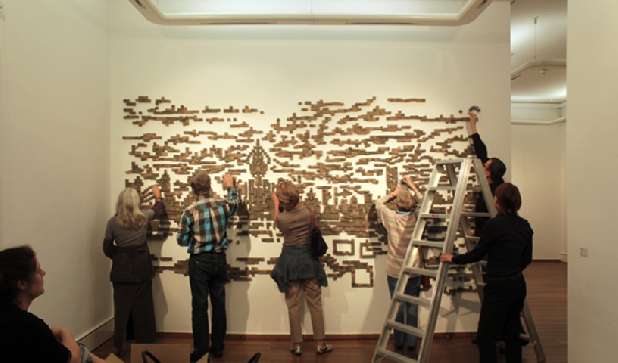 Besucher eingeladen, die Wandarbeit zu verändern als Zukunftsszenario.