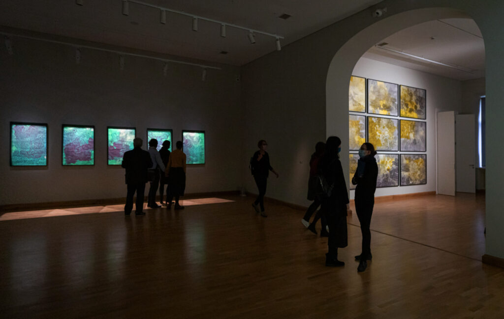 For the first time in Lithuania, the author presents drawings – monochrome maps created with ink and spruce needles. The museum is an empty space for her, open to all directions, which she captures with her artworks and attracts the viewer, encouraging her/him to immerse themself in geographical explorations of the historic Battle of Grunwald, which eventually turns into layers of green forest and green connotations. The only way out is to find the gold cast spruce needle (work series You Are Here, 2021).